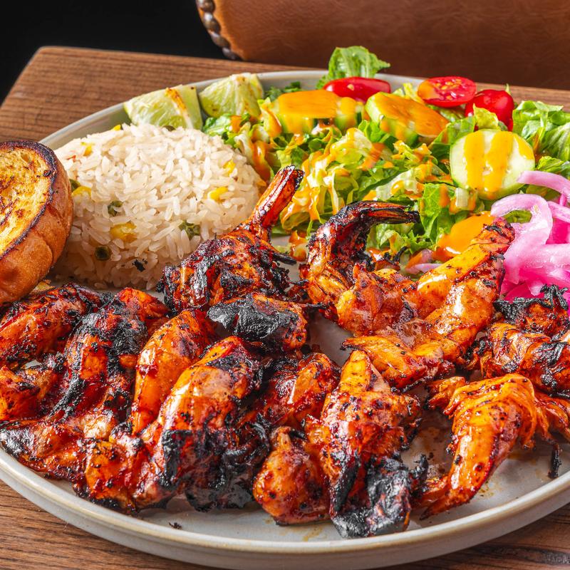 Grilled chicken, shrimp, and pork. Perfect for sharing.