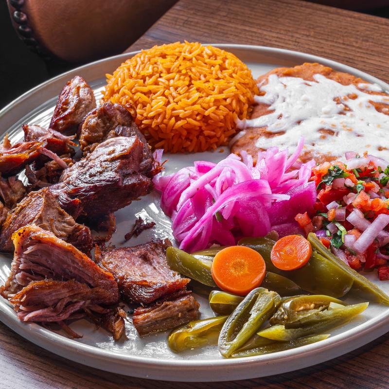 Pick Two (Mediano) $14.50 | Pick Three (Grande) $15.55 • Served with rice and beans.